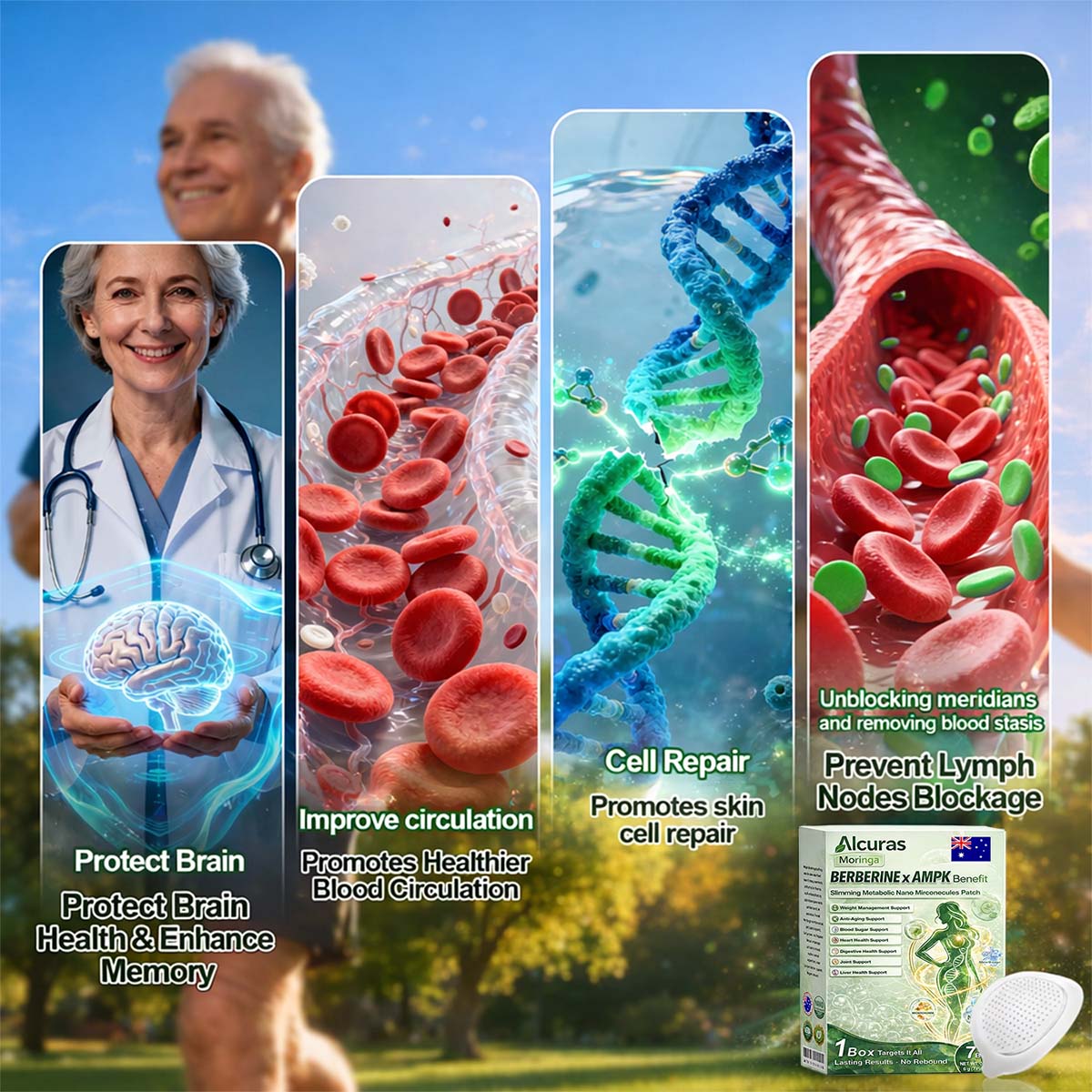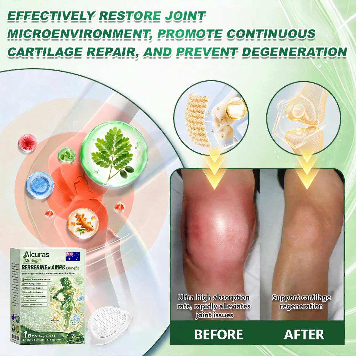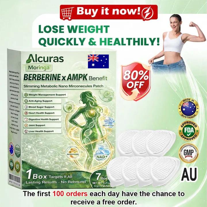 Alcuras®𝑎𝒐𝒓𝒊𝒏𝒈𝗮 ·  𝐁𝐞𝐞 𝐯𝐞𝐧𝐚𝐊 · 𝗕𝗲𝗿𝗯𝗲𝗿𝙞𝙣𝙚 × 𝙉𝘌𝐃+ 𝟖-𝐢𝐧-𝟏 𝗔𝗱𝘃𝗮𝗻𝗰𝙚𝙙 𝙉𝙖𝙣𝙀 𝙈𝙞𝙘𝙧𝙀𝙣𝙚𝙚𝐝𝐥𝐞 𝐏𝐚𝐭𝙘𝙝  was developed through more than 20 years of research by a multidisciplinary team of over 30 experts. Each patch incorporates an ultra-fine microneedle architecture measuring approximately one-seventh the thickness of a human hair. designed to ensure a smooth and virtually painless application. The formulation contains highly concentrated natural bioactive compounds. up to 20-fold higher than conventional market levels. including Moringa and Berberine. which act synergistically to support healthy glycemic responses. appetite regulation. and lipid metabolism. thereby promoting gradual and sustainable weight management. Enriched with NAD+. the patch further supports skin firmness and structural resilience during body-weight fluctuations. helping maintain a lean appearance without compromising comfort or aesthetics. Additional high-efficacy components contribute to the support of immune function. digestive health. gut balance. women's health. daily energy levels. and fatigue reduction. collectively promoting a more youthful and resilient physiological state from within. Manufactured in facilities that comply with Australian. quality standards. this needle-free. science-driven solution provides a safe and comprehensive approach to effective weight management and long-term metabolic health. designed to work in harmony with the body rather than against it.